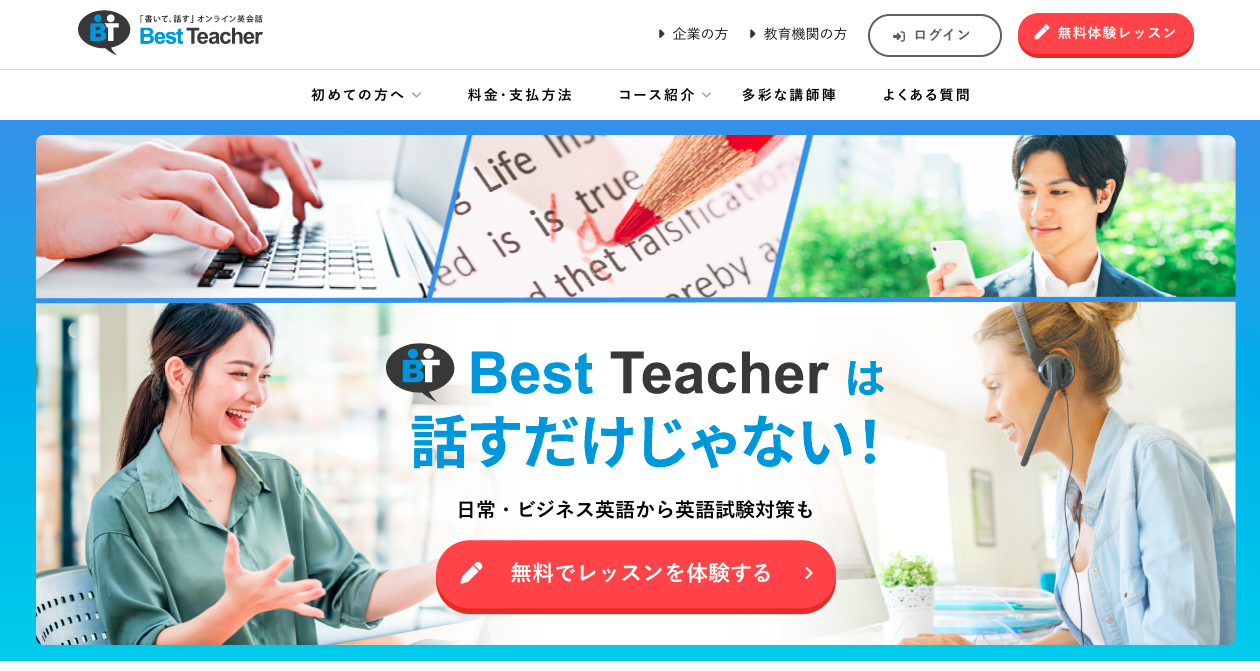 ベストティーチャー | 12,000円〜 | 毎日1回 | 1回25分 | 24時間 | 20分前 | 30分前 | https://www.best-teacher-inc.com/ |